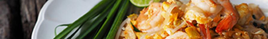 Wide rice noodles & chicken, wok-fried with egg, sweet radish, beansprouts & scallions, served with green leaf lettuce